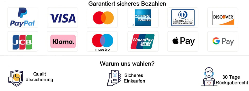 Your payment information is processed securely. We do not store credit card details nor do we have access to your credit card information. We accept payments via: PayPal, Visa, Mastercard, Klarna, American Express, Discover, Google Pay, and Apple Pay.