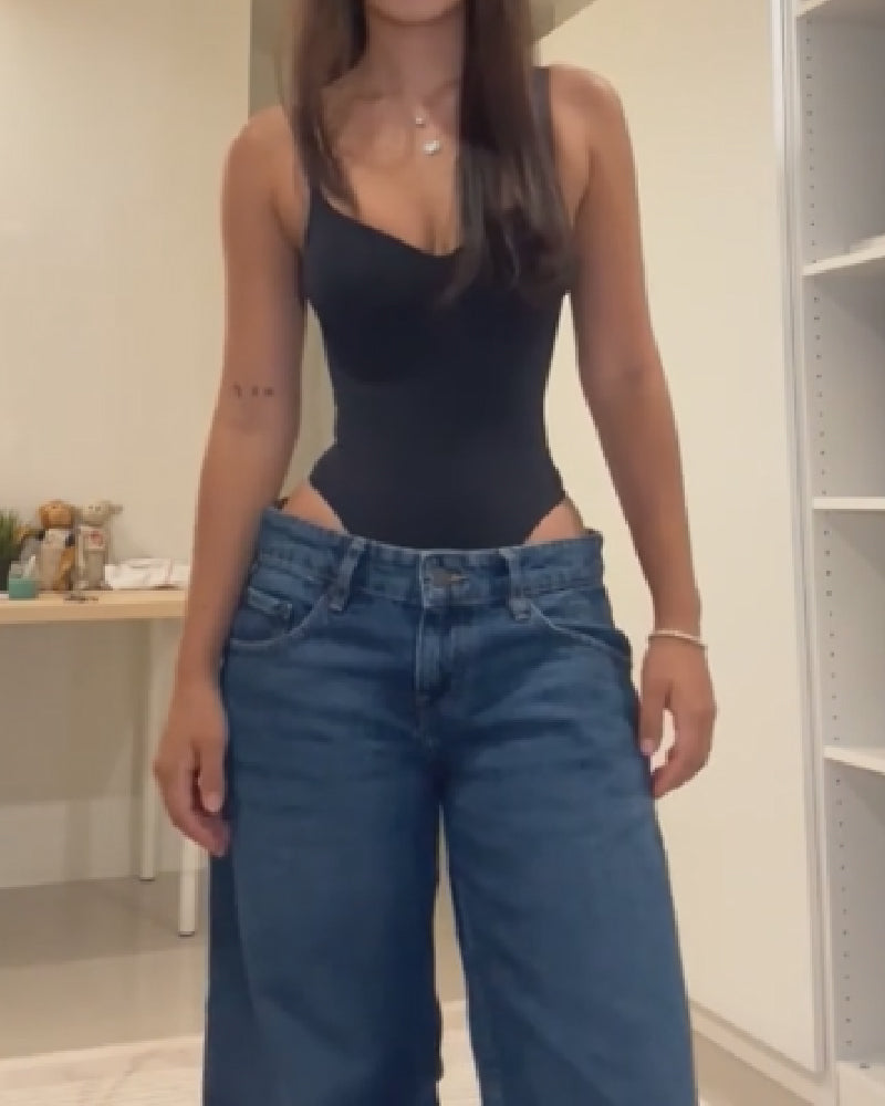 Shapshe® Glatter Push Up Tanga Bodysuit Nahtlos Tiefer V-Ausschnitt Body Shaper